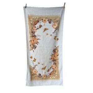 -Unknown brand- Cream background orange flowers butterflies -cotton/poly blend