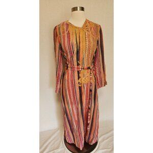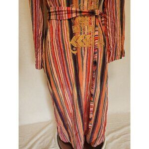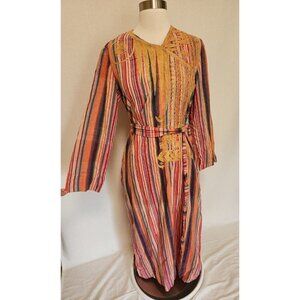 Vintage 70s Treacy Lowe India Belted Caftan Dress Multicolor Stripes