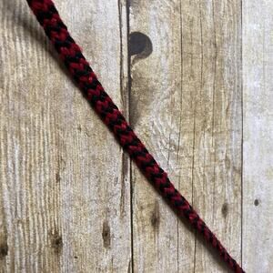 Red & orange tribal wool textile with boho pattern.