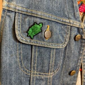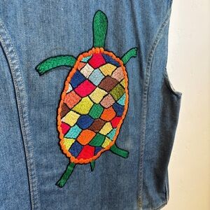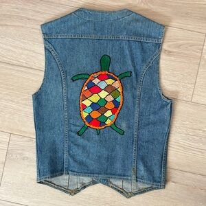 Vintage 70s Turtle Kitschy Handmade Crewel Lee Denim Jean Vest Hippie OOAK