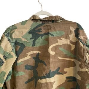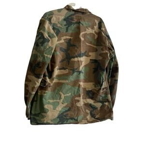 Vintage 70s US Army Brown Military Green Camo Button Up Cotton Jacket Sz Medium