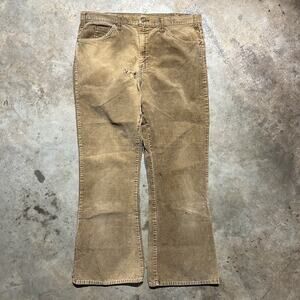 Vintage 70s Unbranded Tan Talon Flared Corduroy Pants 36x30