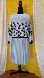 + Retro print on bottom half of top. Minuscule polka dots covering both top and skirt. Skirt has long skinny pleats.