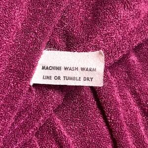 Vintage 70s Union Made Magenta Terry Cloth Side Button Midi Shirt Waist Dress