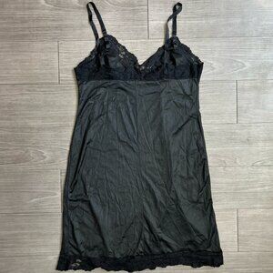 Vintage 70s Union Made Nylon Black Lace Adjustable Strap Sheer Slip Dress Size L