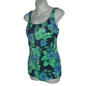 Vintage 70's Unite Bathing Suit Blue Green Tropical Vacation Tankini Swimsuit 14