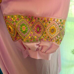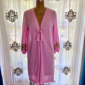 Vintage 70s VASSARETTE Pink Nylon Embroidery Robe Cottagecore Coquette Boho M