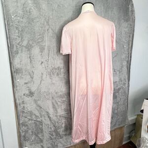 Vintage 70s Vanity Fair Pink Nylon Nightgown Silky Soft W/Floral Lace Sz S