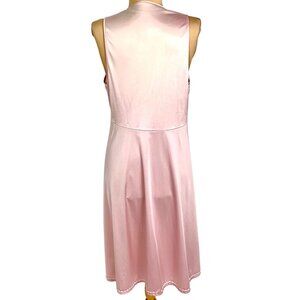 Vintage 70s Vanity Fair Pink Tricot Nylon Embroidered Floral Nightgown Size 36