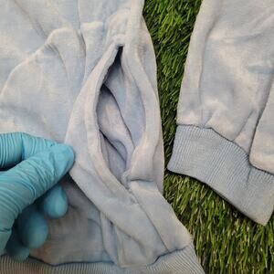 70s velour chest stripe pullover in light blue with hand pockets plush terry feel and disco fit shop now