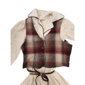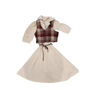 Vintage 70s Vested 3/4 Jrs Dress S Schoolgirl Preppy Modest Off White Red Plaid