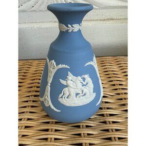 Vintage 70's Wedgwood Blue Jasperware Posy Bud Vase With Neoclassical Relief