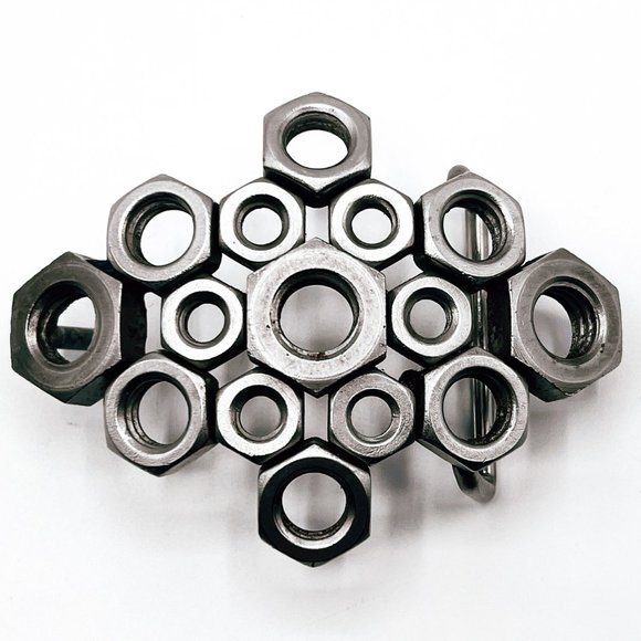 Vintage 70's Welded Steel Hex Nut Belt Buckle, Handcrafted Wearable Art