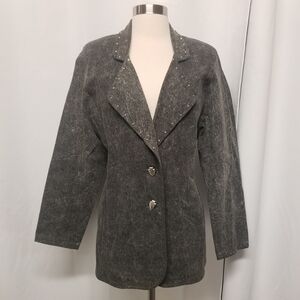 Vintage 70s Western Slate Wash Blazer Jean Jacket Gypsy Boho Studded Arrow