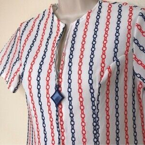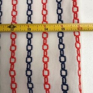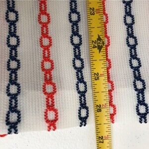 Vintage 70s White Double Knit Orange Blue Chain Stitch Zip Up Top Womens Medium