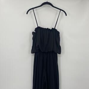 Vintage 70s Wide Leg Jumpsuit Strappy Blouson Bodice High Waist Black Womens M