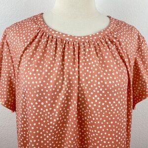 Vintage 70s Woman Lorac Original Dress Shift Muu Muu Peach White Polka Dots Midi