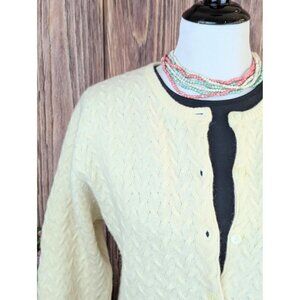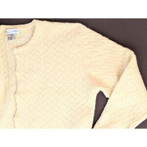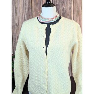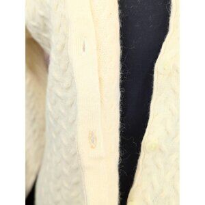 Vintage 70s Womens Cable Knit Crew Neck Cardigan Lambs Wool Angora Luxe Sweater