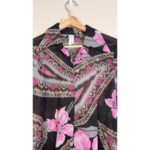 Vintage 70s Women’s Shirt Paisley Gogo Mod Disco Hippie Button Sheer Size Med