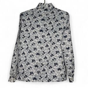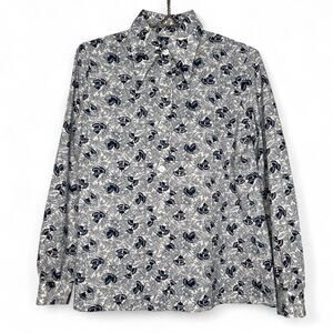 Vintage 70s Womens Size Large Blue White Dart Collar Blouse Top Retro Secretary