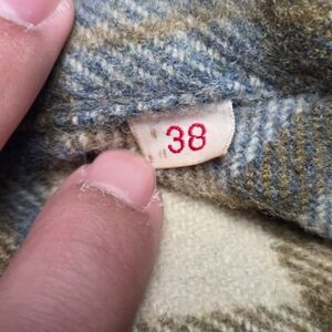 This is a great looking thick plaid jacket from Woolrich around the 70s. It's in really great shape. The only flaw I notice is a missing button on a cuff.