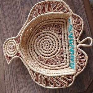 Vintage 70s Woven Wicker Bohemian Bird Basket