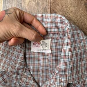 Vintage 70s Wrangler Shirt Men's Medium Plaid Pearl Buttons Western Cowboy 5277