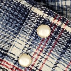 Throw it back with this 70s Wrangler classic, shadow plaid, pointed yoke, and rugged Western flair in a clean blue tone.