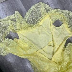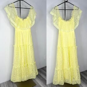Vintage 70s Yellow Lace Ruffle Maxi Dress Cottagecore Coquette fits like an XS