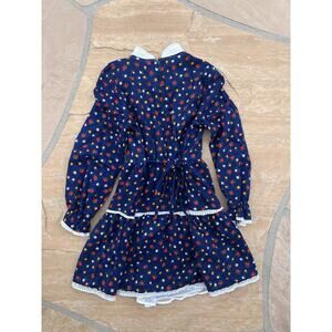 This Vintage 70's Youngland Girls Dress is a charming retro piece perfect for a casual occasion. Made of cotton with a colorful mixed print, this dress features long sleeves and rickrack detailing that adds a touch of mod/GoGo style. Designed in the United States during the 1970s, this dress is a size 12, ideal for young girls aged 12-14 looking to channel their inner flower child. The vintage appeal and unique design make it a standout addition to any wardrobe.