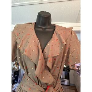 Vintage 70s Yves Jennet Floral Tea Dress Secretary Flare Red Brown Bow Sz 10