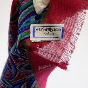 Vintage 70s Yves Saint Laurent Wool Paisley Polka Dot Fringed Scarf Fouard