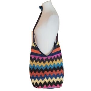Vintage 70's Zig Zag Multi-color Woven Crossbody Hobo Bag