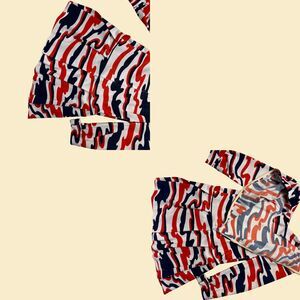 Vintage 70s abstract dress, 29" waist handmade 1970s red/white/blue midi dress