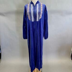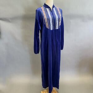 Vintage 70s at HomeWear by Sears blue velvet long house coat size Medium 12-14
