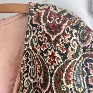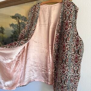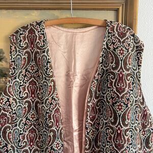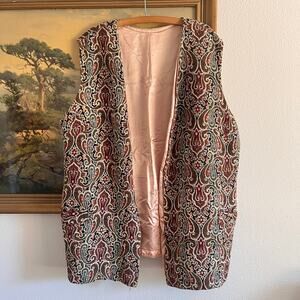 Vintage bohemian tapestry handmade vest oversized paisley maximalist boho opulent chic. Amazing handmade vest. Has some handmade quirks like loose threads etc. Overall well done, has pockets, has a luxurious silky lining. ptp 26" length 31.5" No tags - Please use measurements to determine fit.