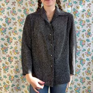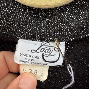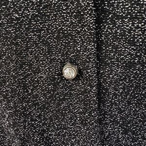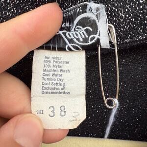 90 polyester 10 Mylar . No marks or holes but hem on sleeve needs to be restitched. Good preloved condition.