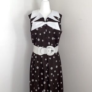 Vintage 70’s chocolate brown white polka dot maxi dress