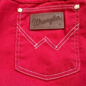Vintage 70s flared leg jeans sz 14 red wrangler retro boho contrast stitching