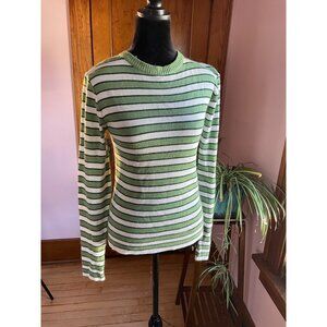 Vintage 70s green striped ribbed knit crewneck sweater XS-S fit coquette preppy