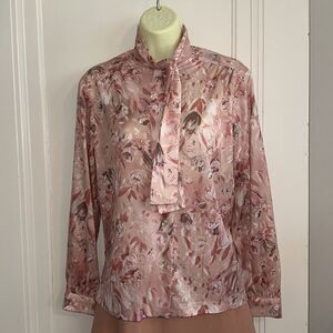 Pink patterned tie neck top