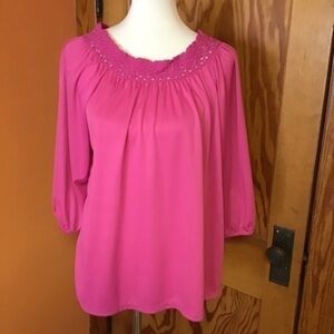 Vintage 70s hot pink polyester vintage lace neckline tunic muumuu