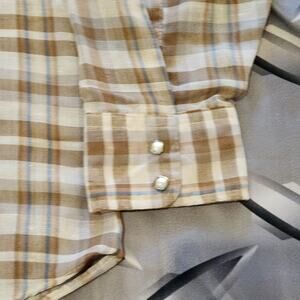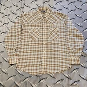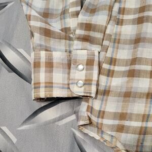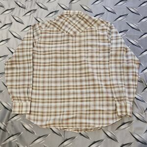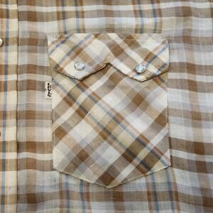 Vintage 70s levis white tab pearl snap western shirt size L Brown Tan Plaid