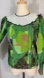 Vintage 70’s lurex metallic green mod geometric print pleated collar blouse