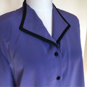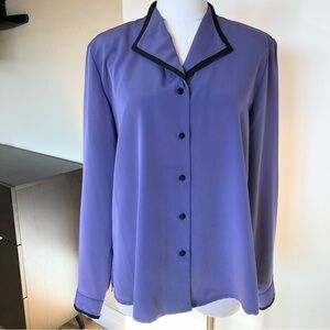 Vintage 70’s purple and black button up long sleeve polyester blouse 12