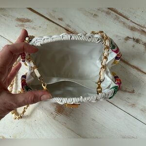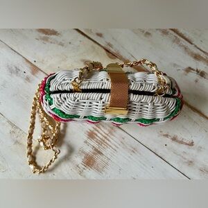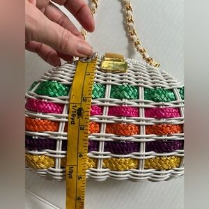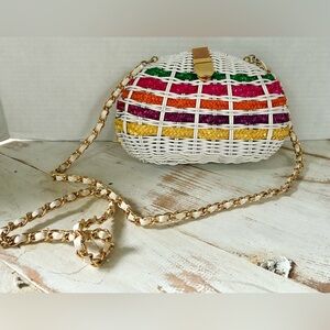 Vintage 70s purse picnic basket style plastic coated wicker shoulder bag EUC