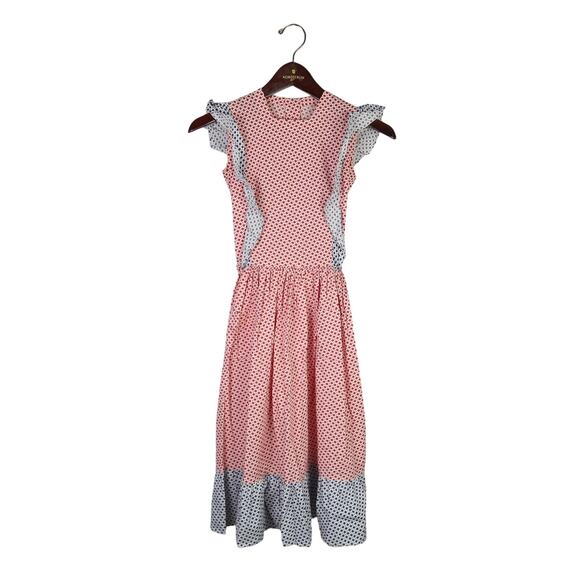 Vintage 70s red white and blue calico floral print midi prairie dress XXS