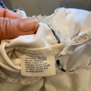 Vintage 70s red white & blue Floral Embroidered Gingham Baby Dress .