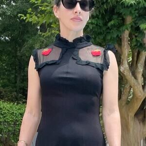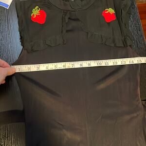 -Sheer patches in front with embroidered strawberry patches on both sides