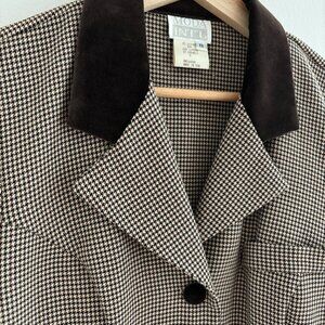 Awesome brown and black houndstooth patterned button blazer